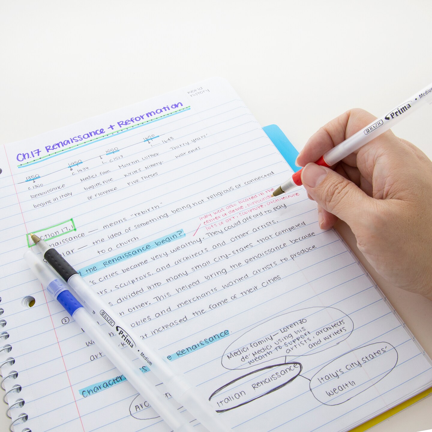 BAZIC Prima Assorted Color Stick Pen w/ Cushion Grip (8/Pack)
