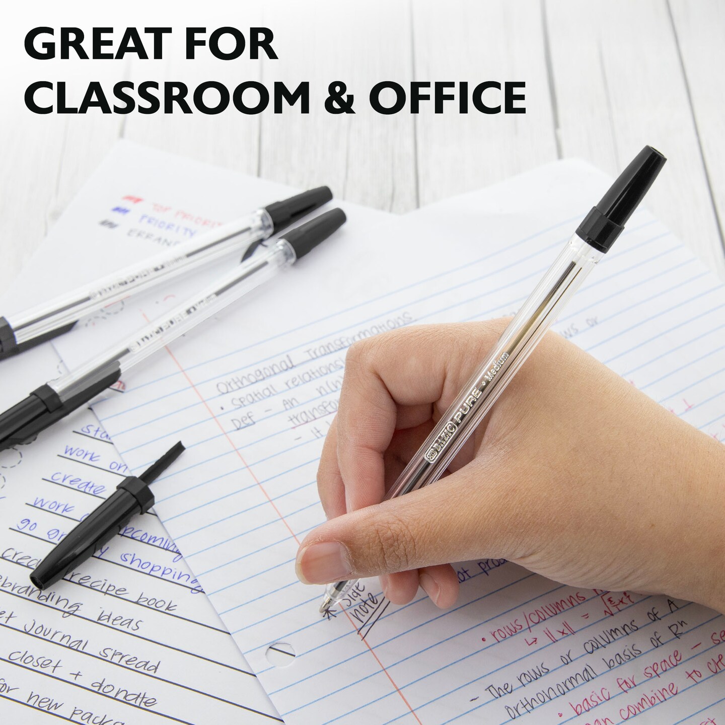 BAZIC Pure Black Stick Pen (12/Pack)