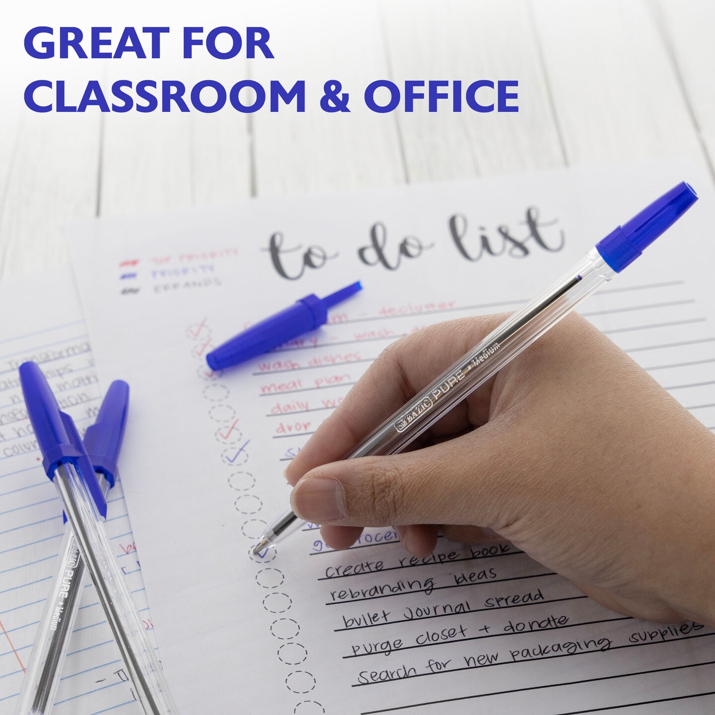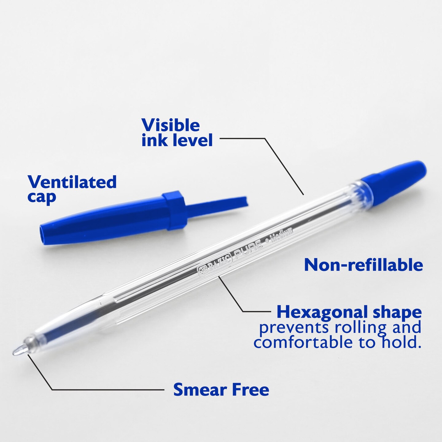 BAZIC Pure Blue Stick Pen (12/Pack)