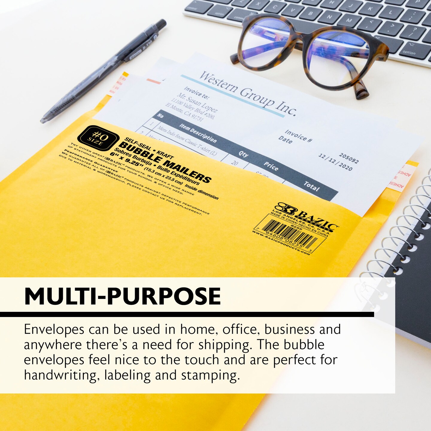 BAZIC Self-Seal Bubble Mailers (#0) 6" x 9.25" (4/Pack)