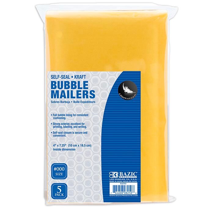 BAZIC Self-Seal Bubble Mailers (#000) 4" X 7.25" (5/Pack)