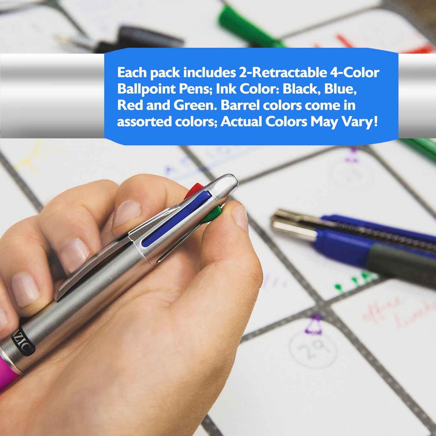 BAZIC Silver Top 4-Color Pen w/ Cushion Grip (2/Pack)