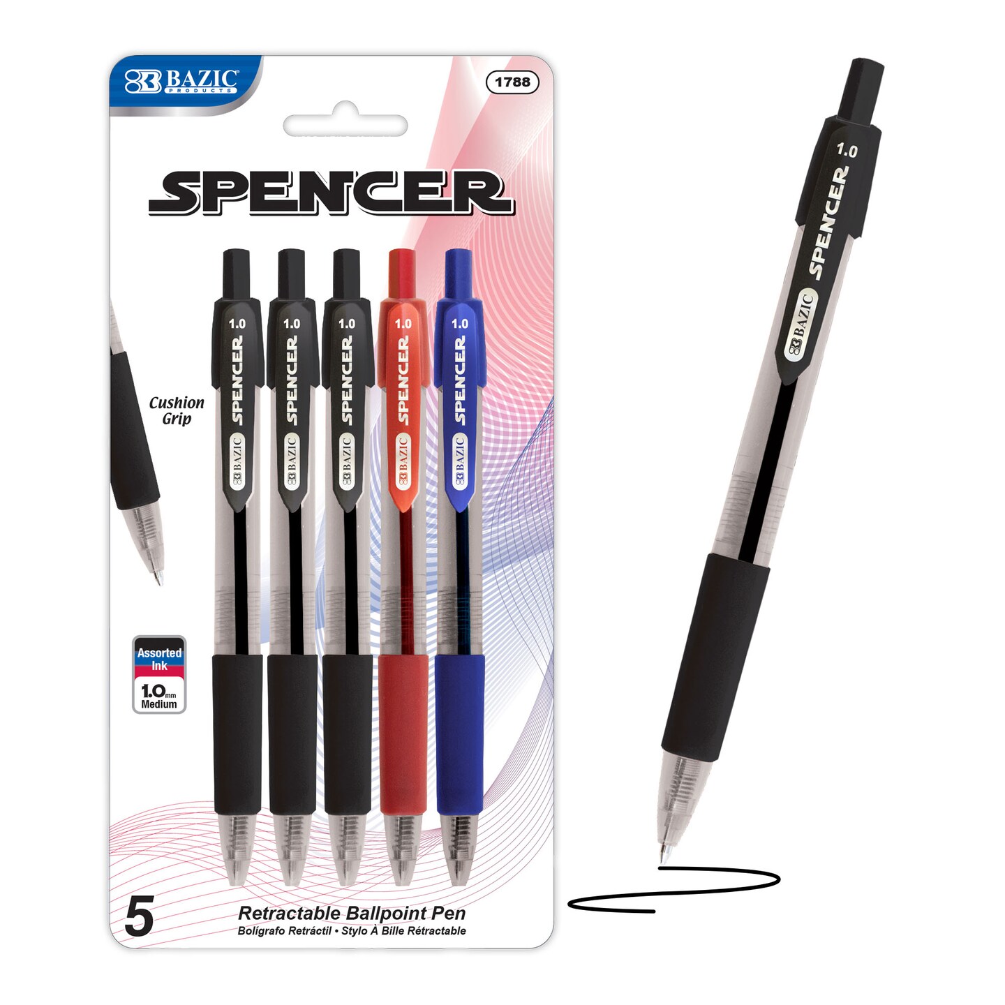 BAZIC Spencer Assorted Color Retractable Pen Cushion Grip (5/Pack)