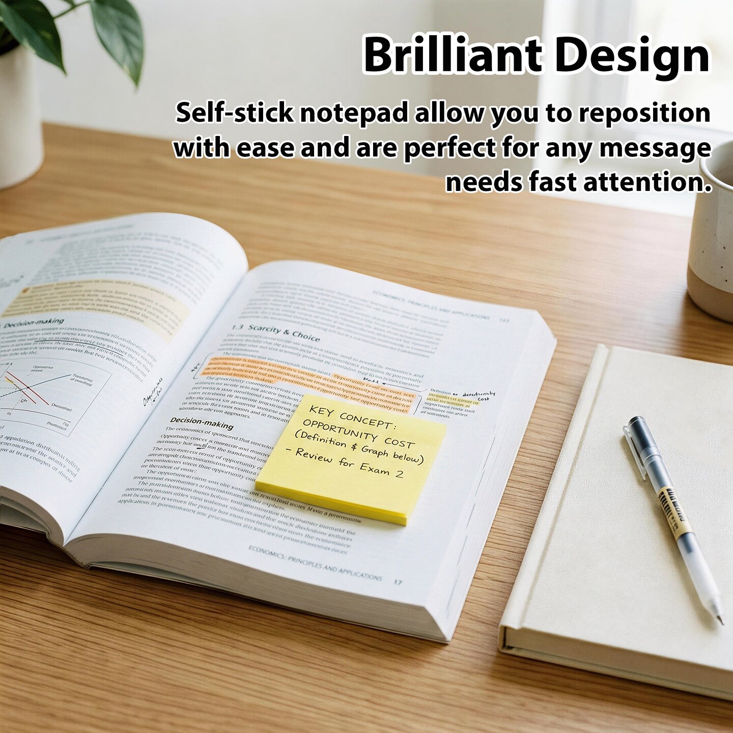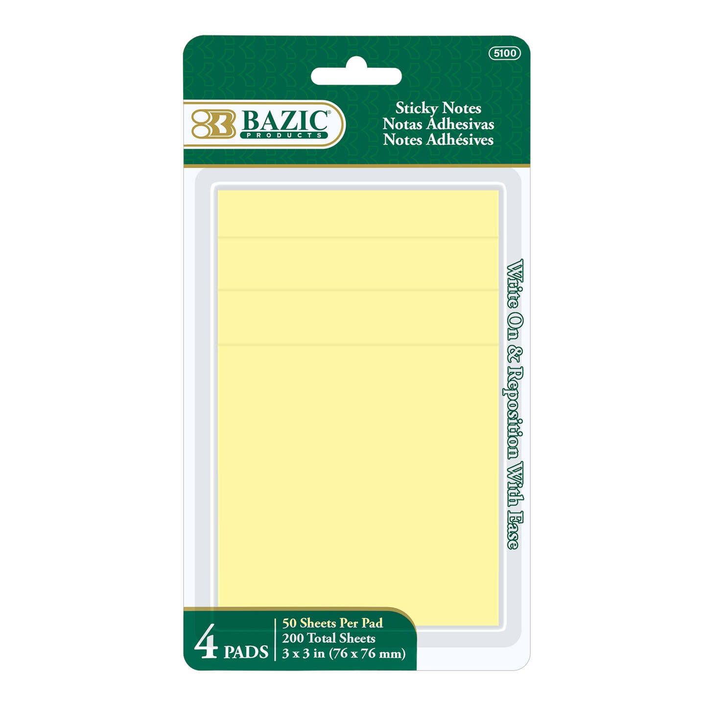 BAZIC Sticky Notes 3" X 3" 50 Ct. (4/Pack) Yellow