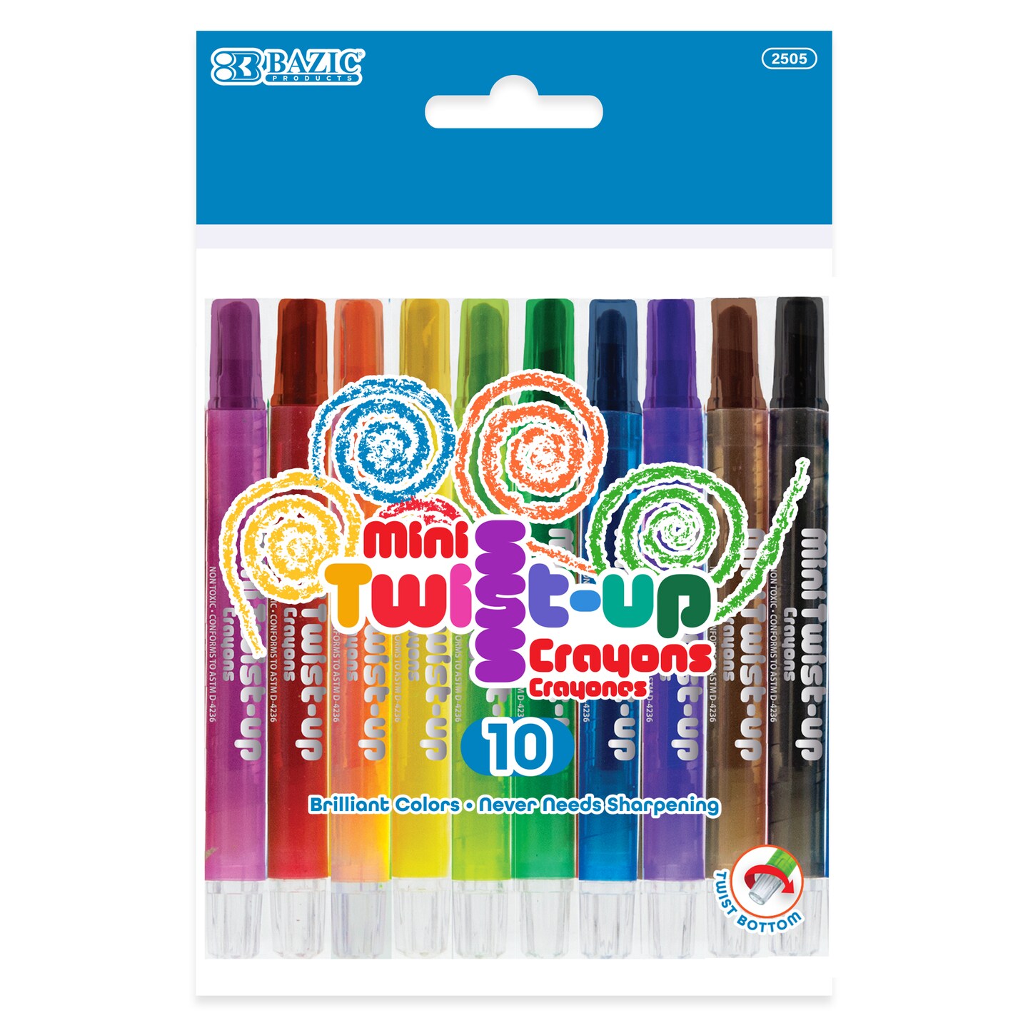 BAZIC Twist-Up Propelling Crayons Mini 10 Color