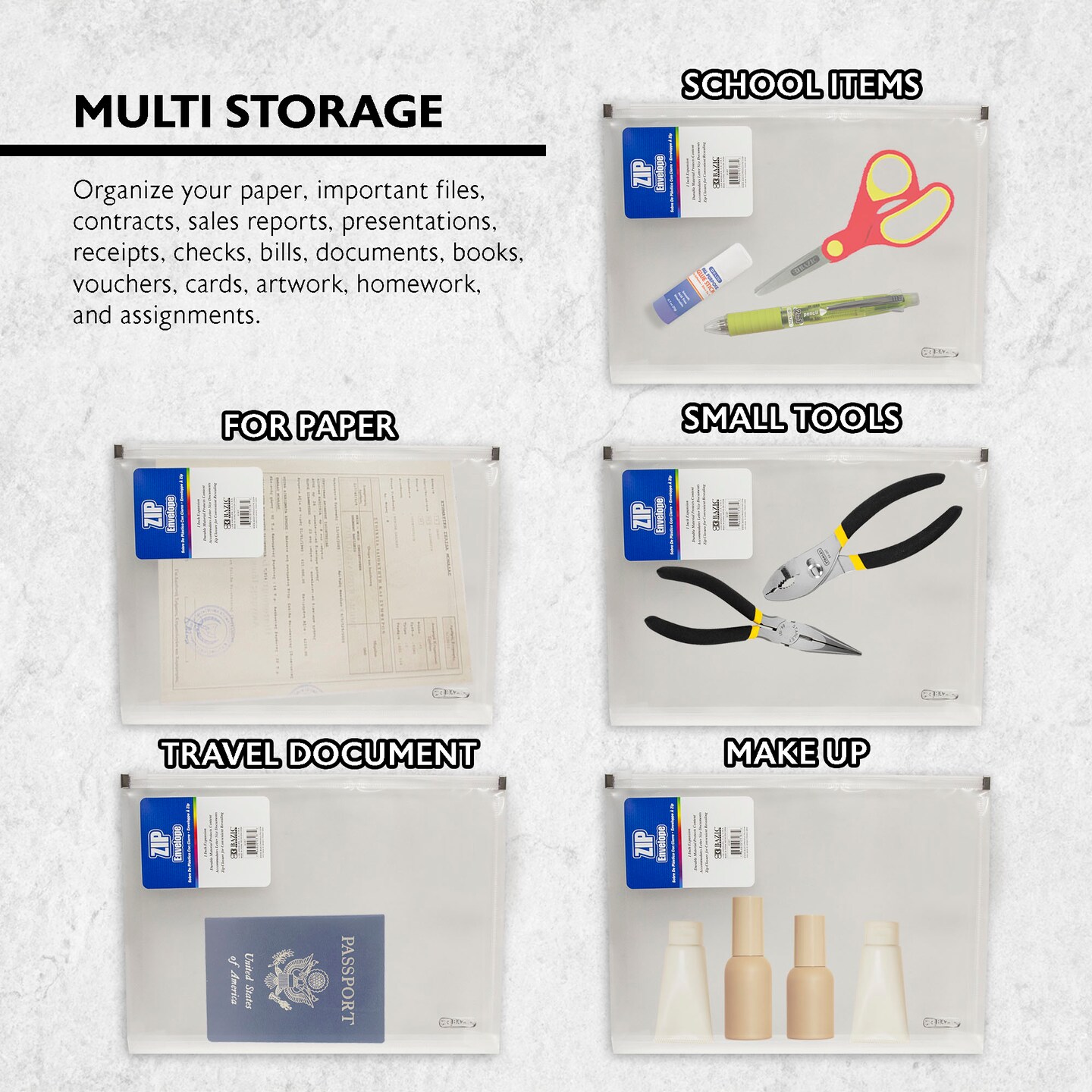 BAZIC Zip Envelope A4/Letter Size - Clear