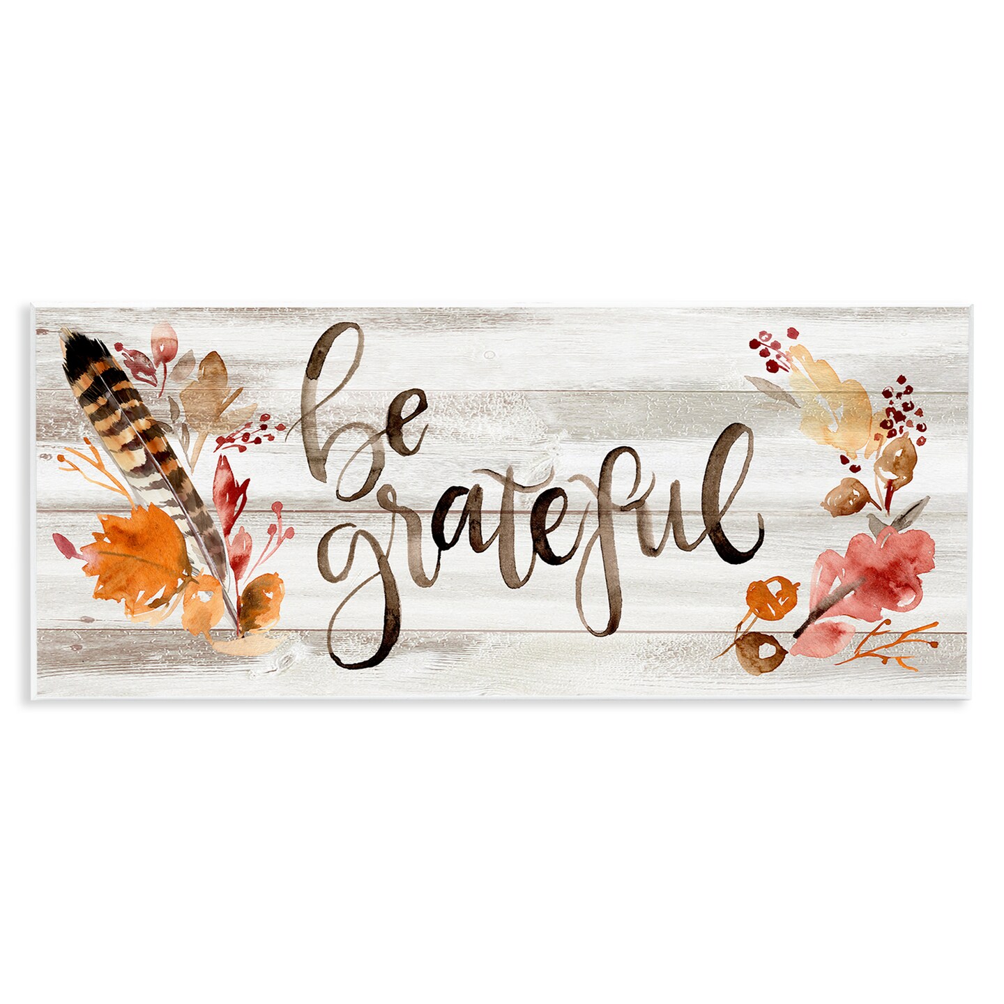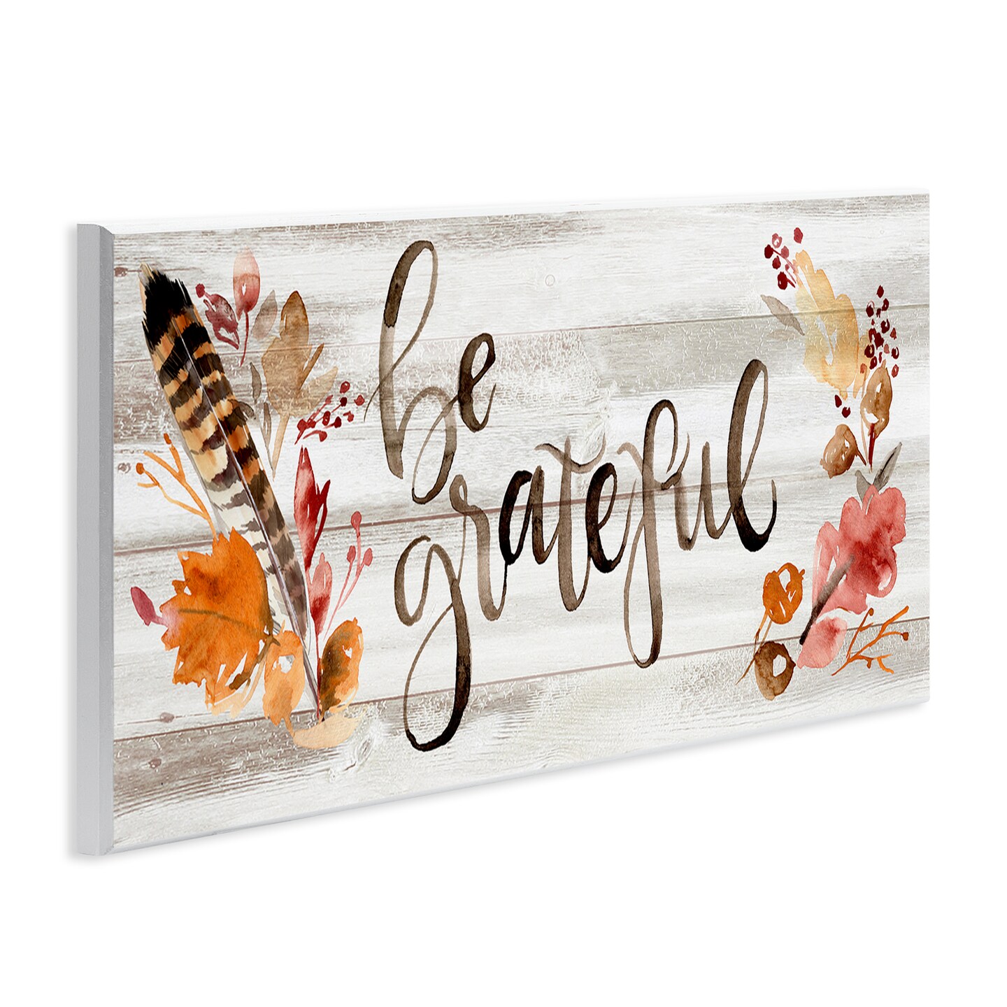 Be Grateful Boho Calligraphy Rustic Autumn Flowers Wall Plaque Art