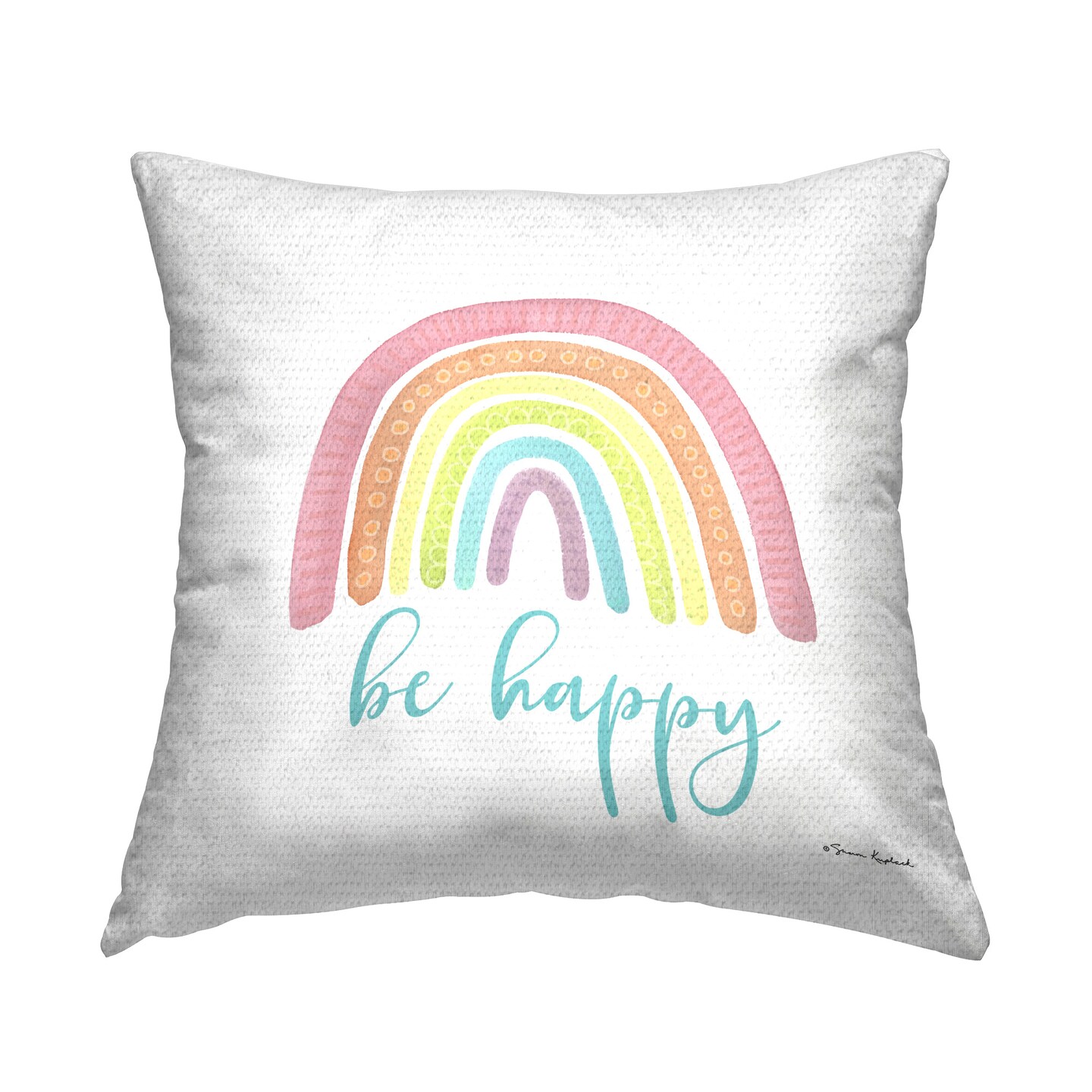 Be Happy with Rainbow Design by Sharon Kuplack Outdoor Printed Pillow