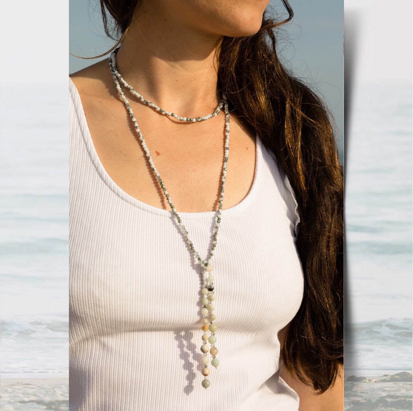 Beach Neutrals Beaded Lariat Wrap Necklace