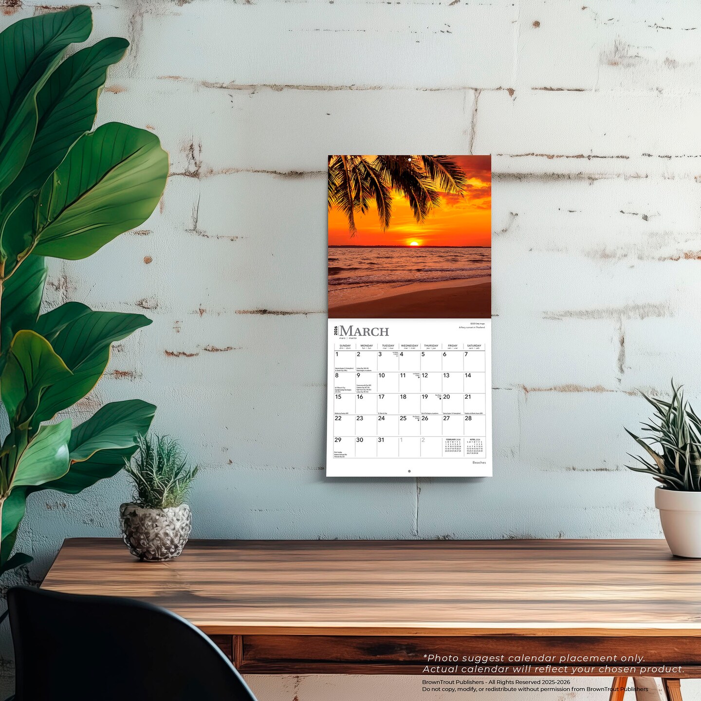 Beaches | 2026 7 x 14 Inch (Hanging) Monthly Mini Wall Calendar