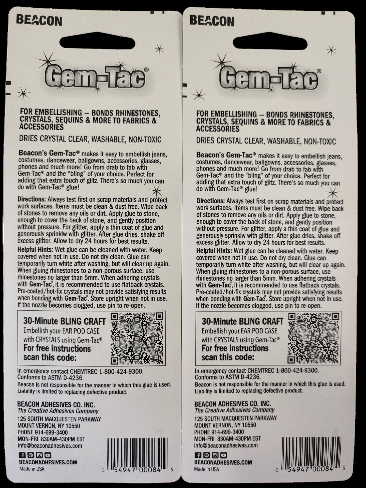 Beacon Gem-Tac Permanent Glue for Embellishing, MINI 3 Pack, 0.51 FL OZ Total, Clear
