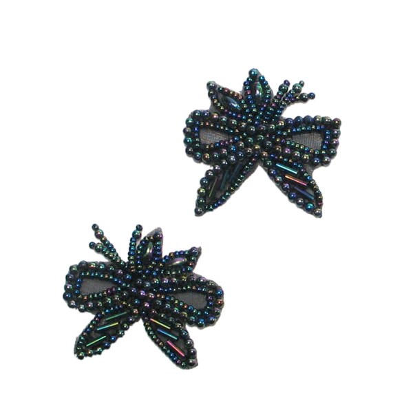 Beaded Bow with Leaf Applique/Patch Pack of 2