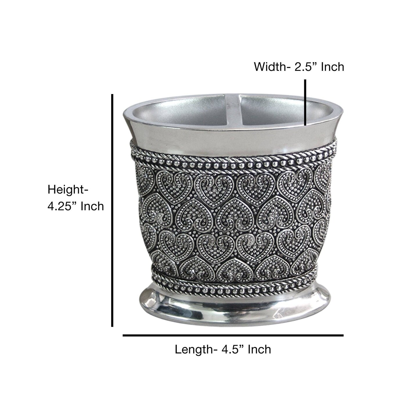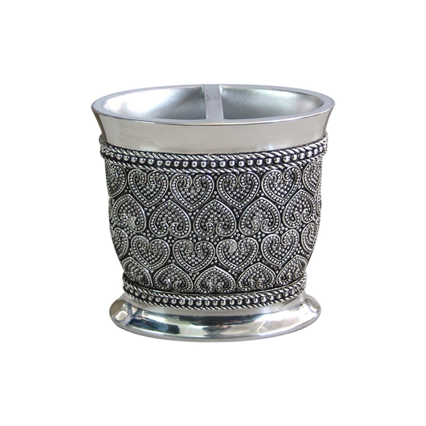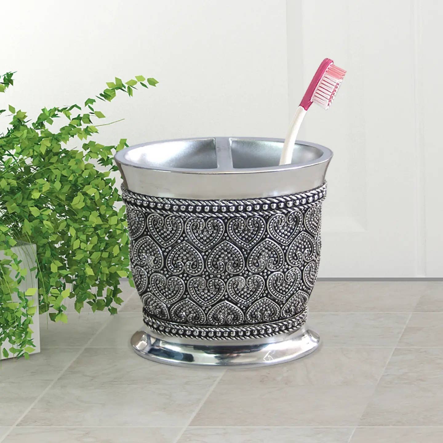 Beaded Heart Toothbrush Holder | Compact Multi-Slot Holder for Toothbrushes,Razors & Makeup Accessories | Chrome | Resin