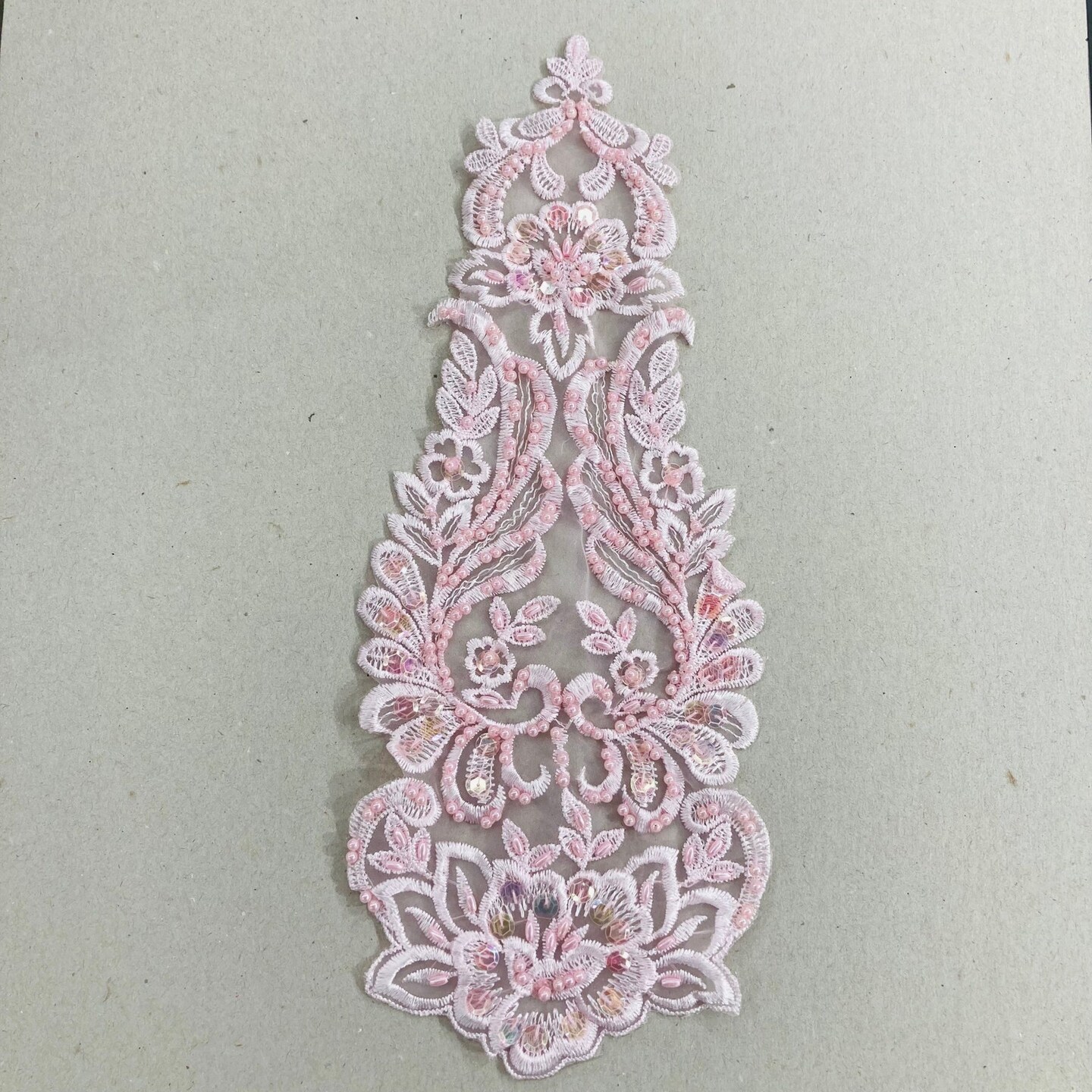 Beaded Lace Medallion Applique for Bridal Veils and Wedding Gowns 14" x 5.5"