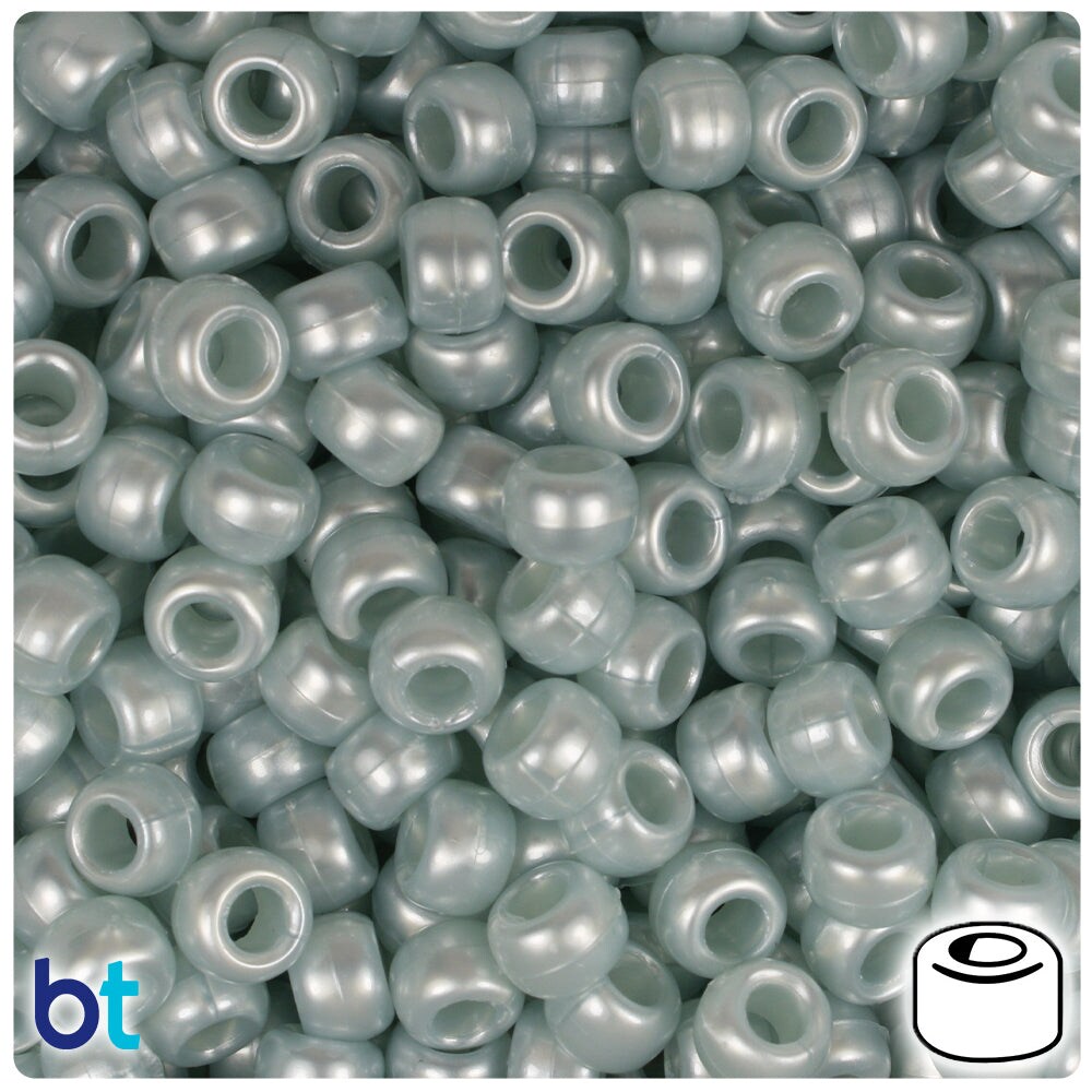 BeadTin Azure Blue Pearl 9mm Barrel Plastic Pony Beads (500pcs)