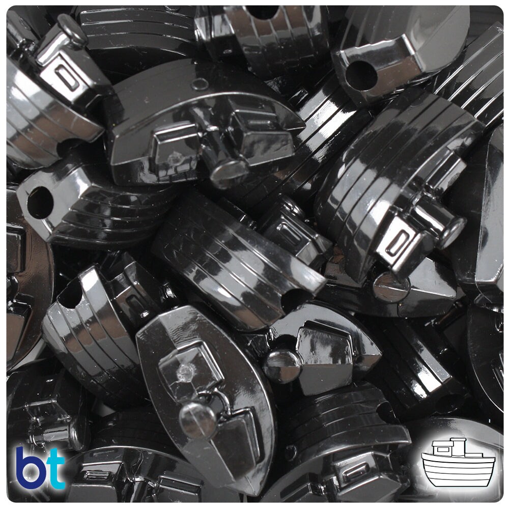 BeadTin Black Opaque 25mm Boat Plastic Pony Beads (24pcs)