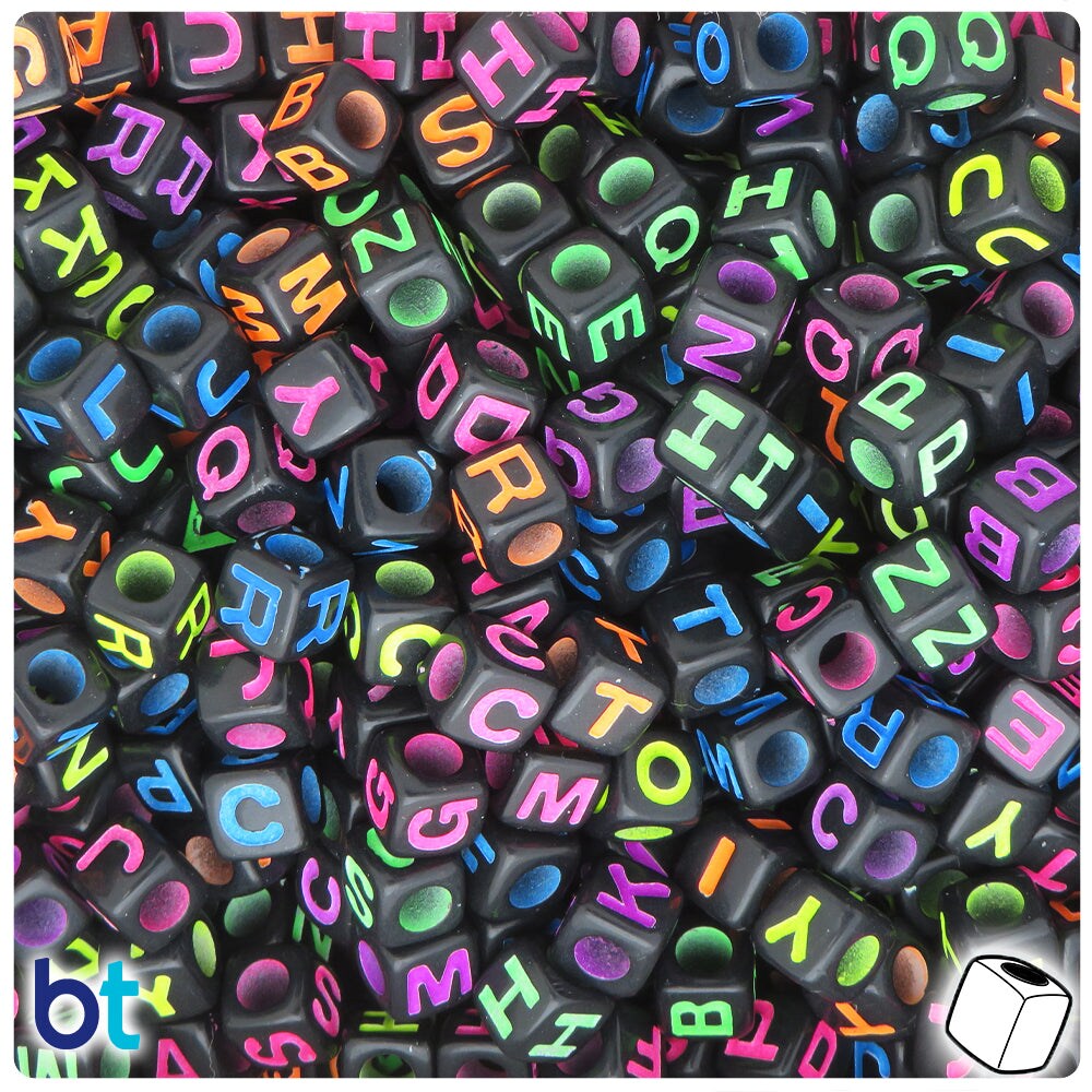 BeadTin Black Opaque 7mm Cube Plastic Alpha Beads - Colored Letter Mix (200pcs)