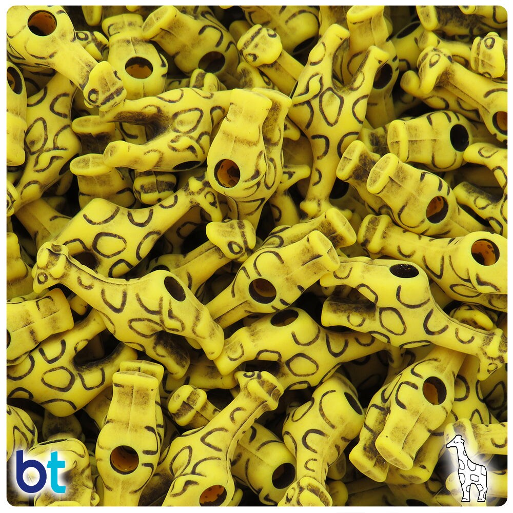 BeadTin Bright Yellow Antique 26mm Giraffe Plastic Pony Beads (24pcs)