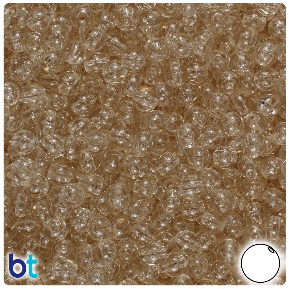 BeadTin Champagne Transparent 6mm Round Plastic Craft Beads (500pcs)