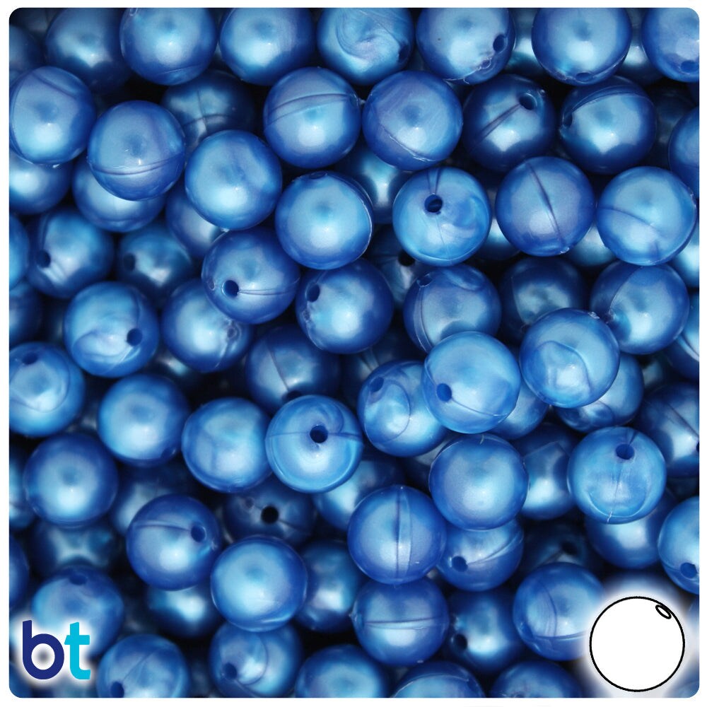 BeadTin Dark Blue Pearl 10mm Round Plastic Craft Beads (150pcs)