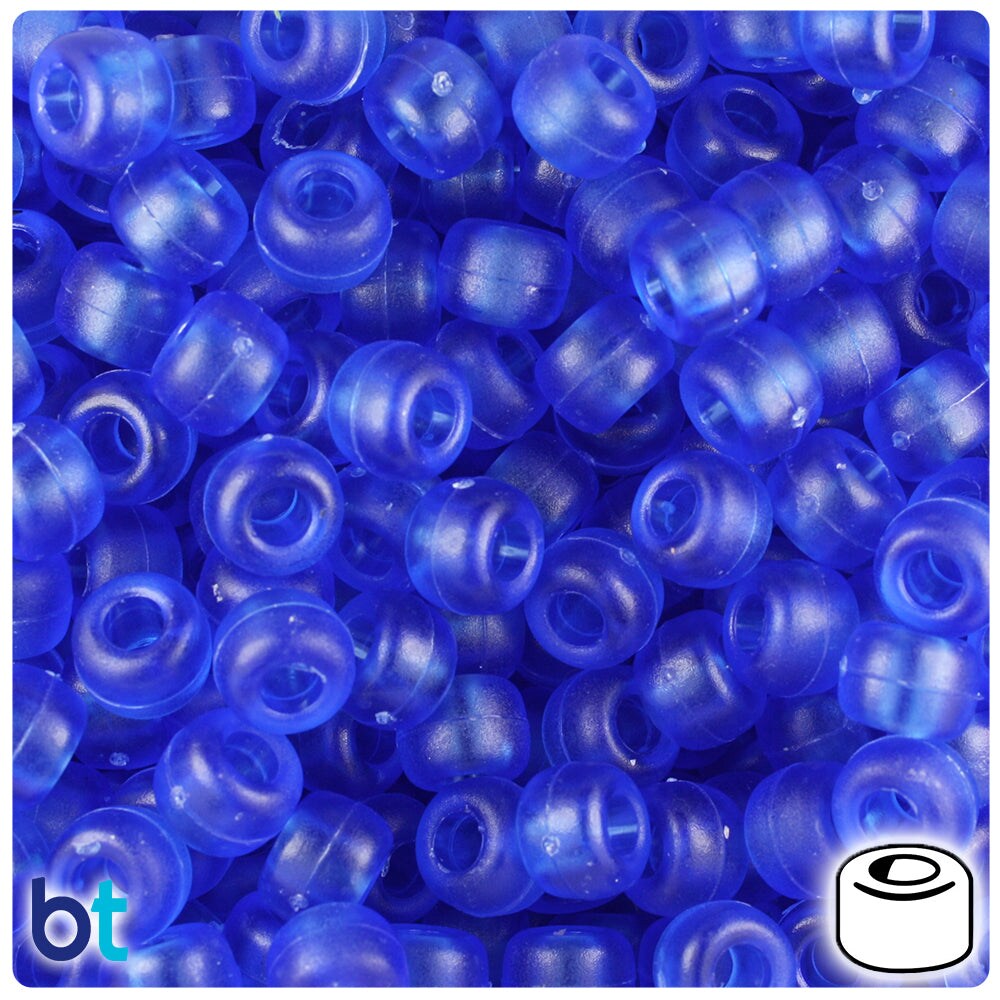 BeadTin Dark Sapphire Frosted 9mm Barrel Plastic Pony Beads (500pcs)