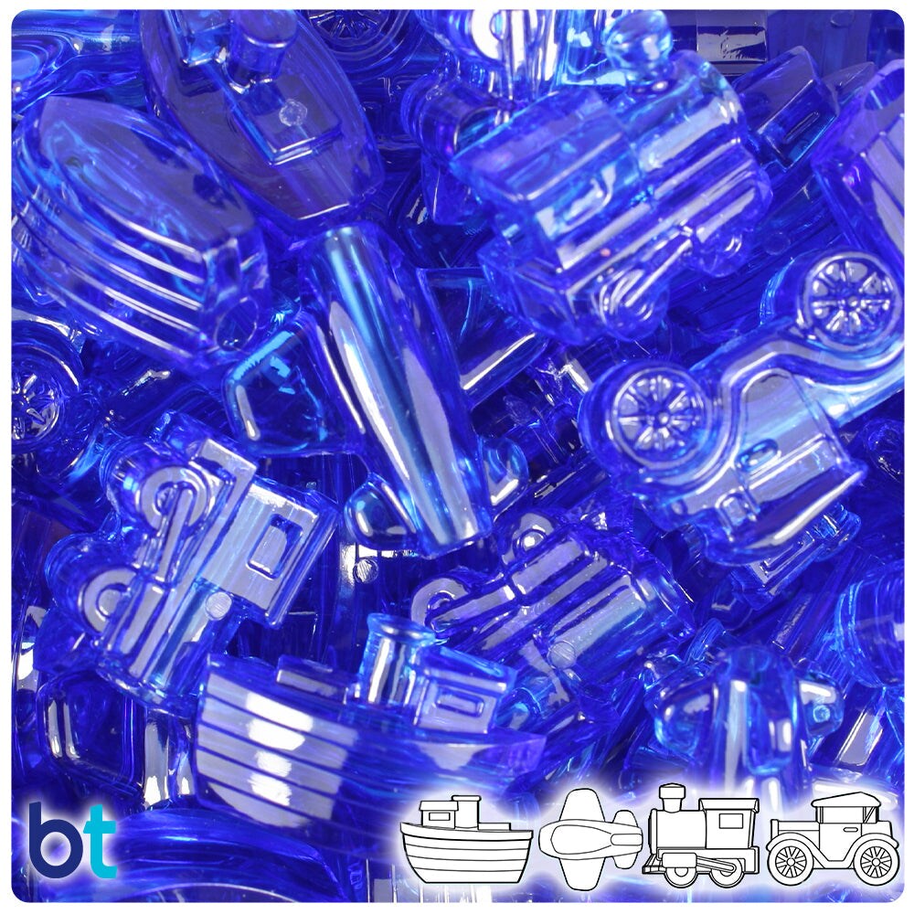 BeadTin Dark Sapphire Transparent Mini Mobile Plastic Pony Beads (2oz)