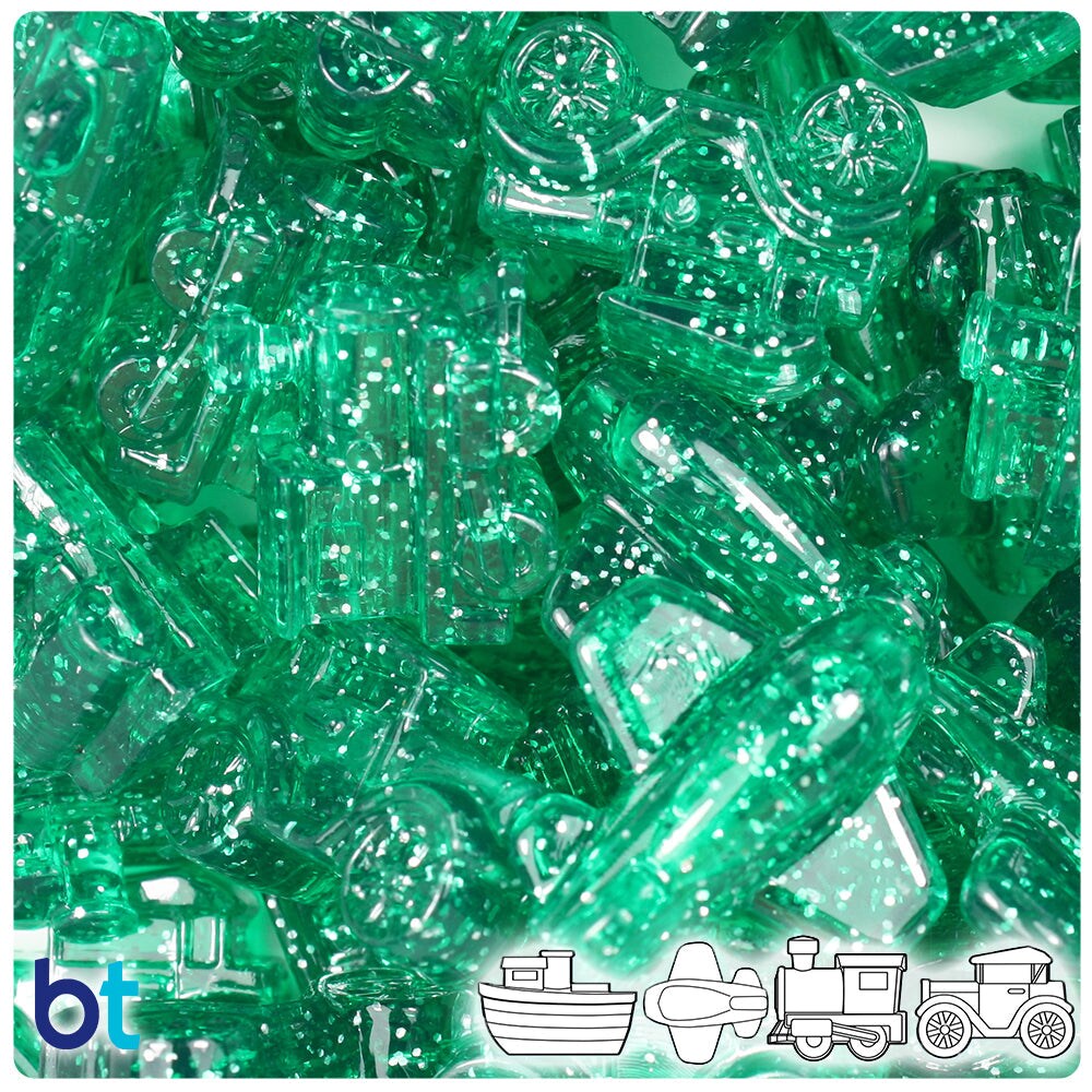 BeadTin Emerald Sparkle Mini Mobile Plastic Pony Beads (2oz)