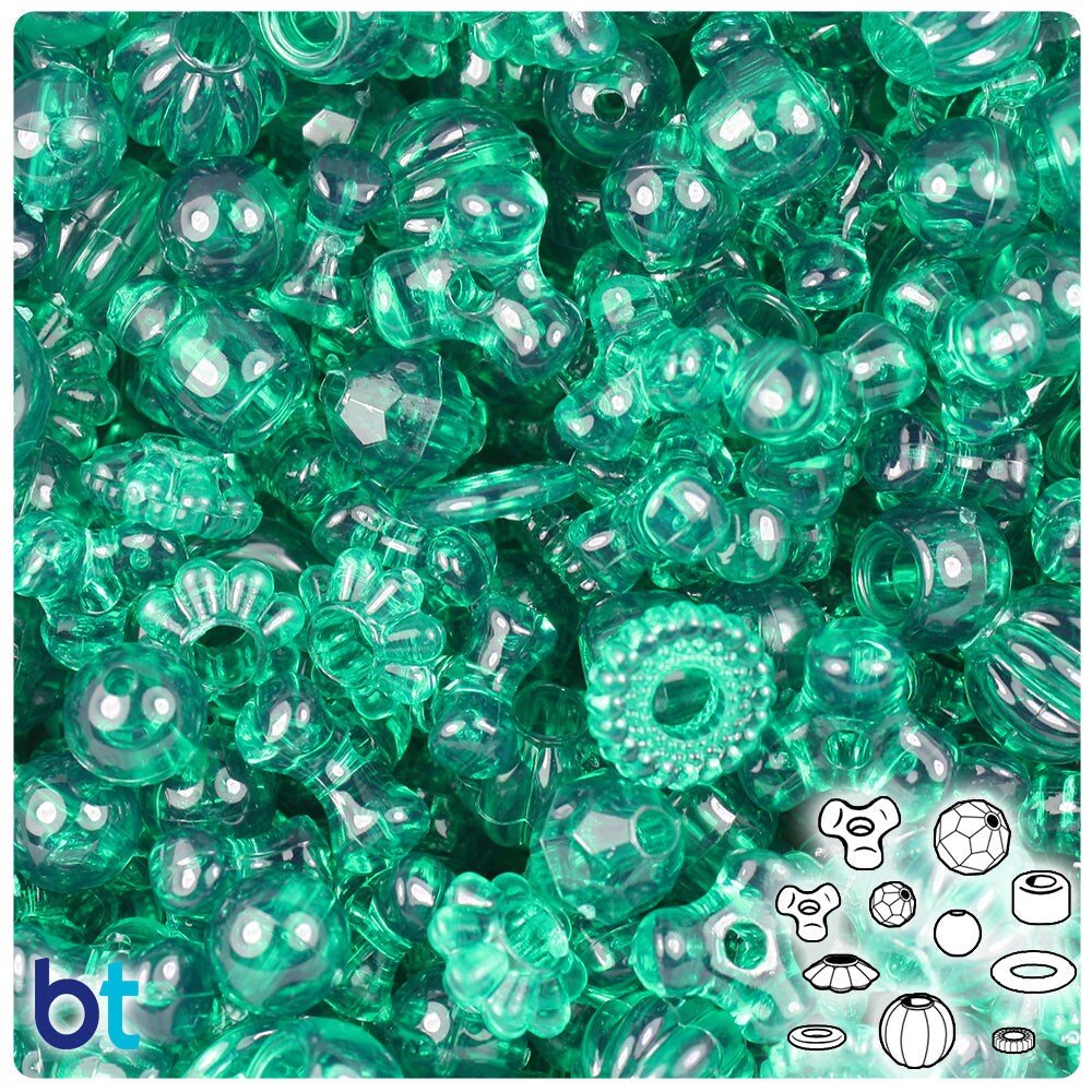 BeadTin Emerald Transparent Plastic Craft Beads Mix (4oz)