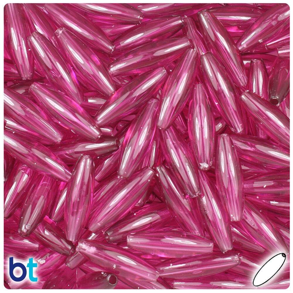 BeadTin Fuchsia Transparent 19mm Spaghetti Plastic Craft Beads (150pcs)