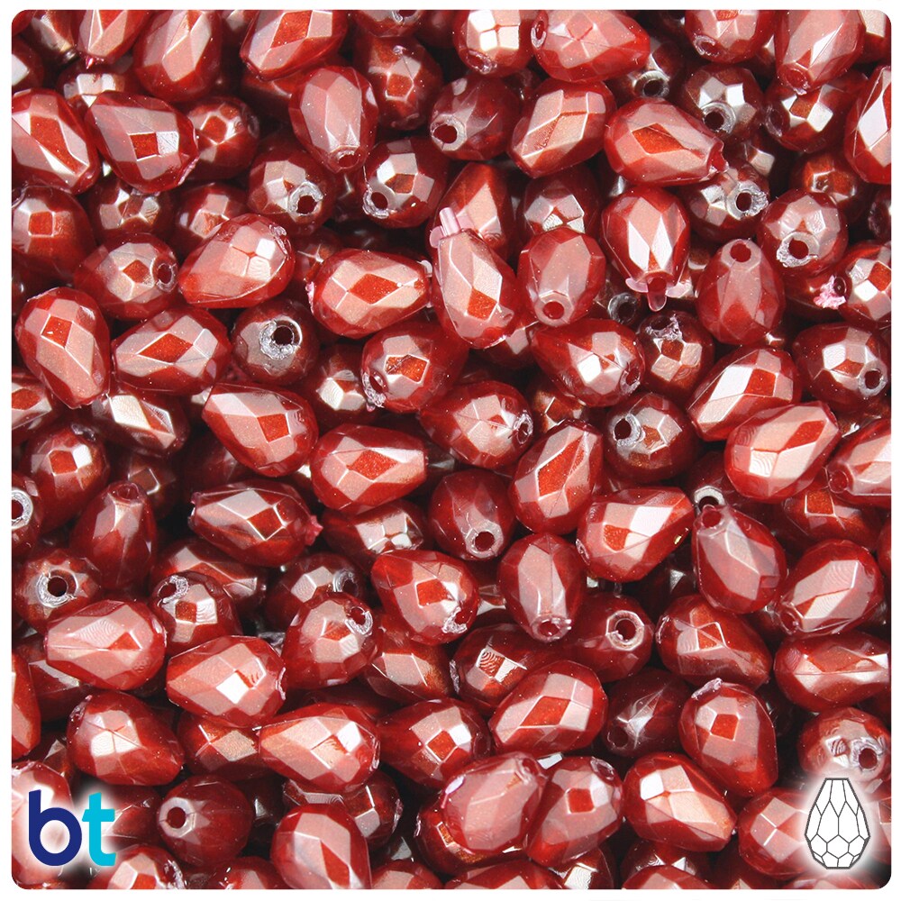 BeadTin Garnet Transparent w/Gold Swirls 9mm Faceted Pear Plastic Beads (60pcs)