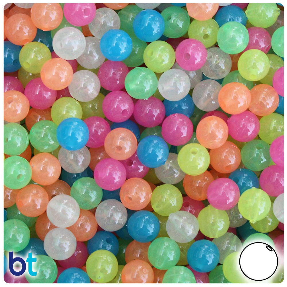 BeadTin Glow Mix 8mm Round Plastic Craft Beads (300pcs)