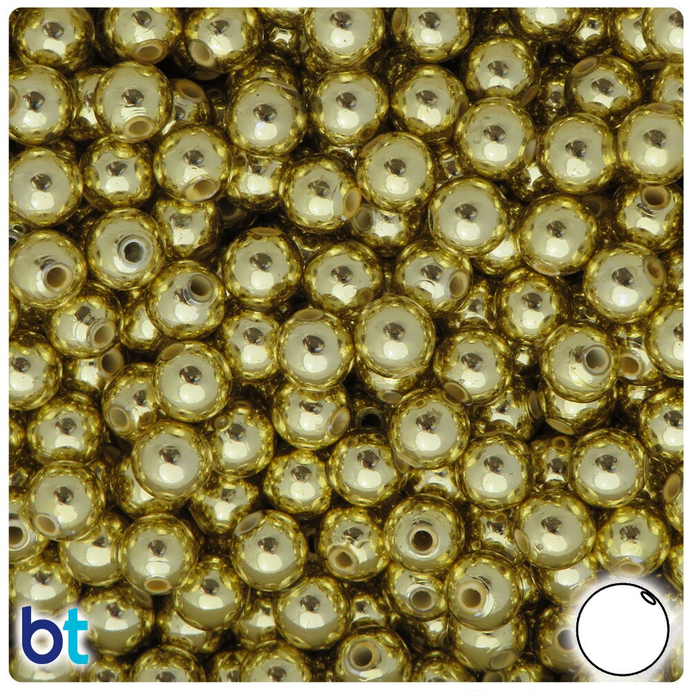 BeadTin Gold Metallic 8mm Round Plastic Craft Beads (150pcs)
