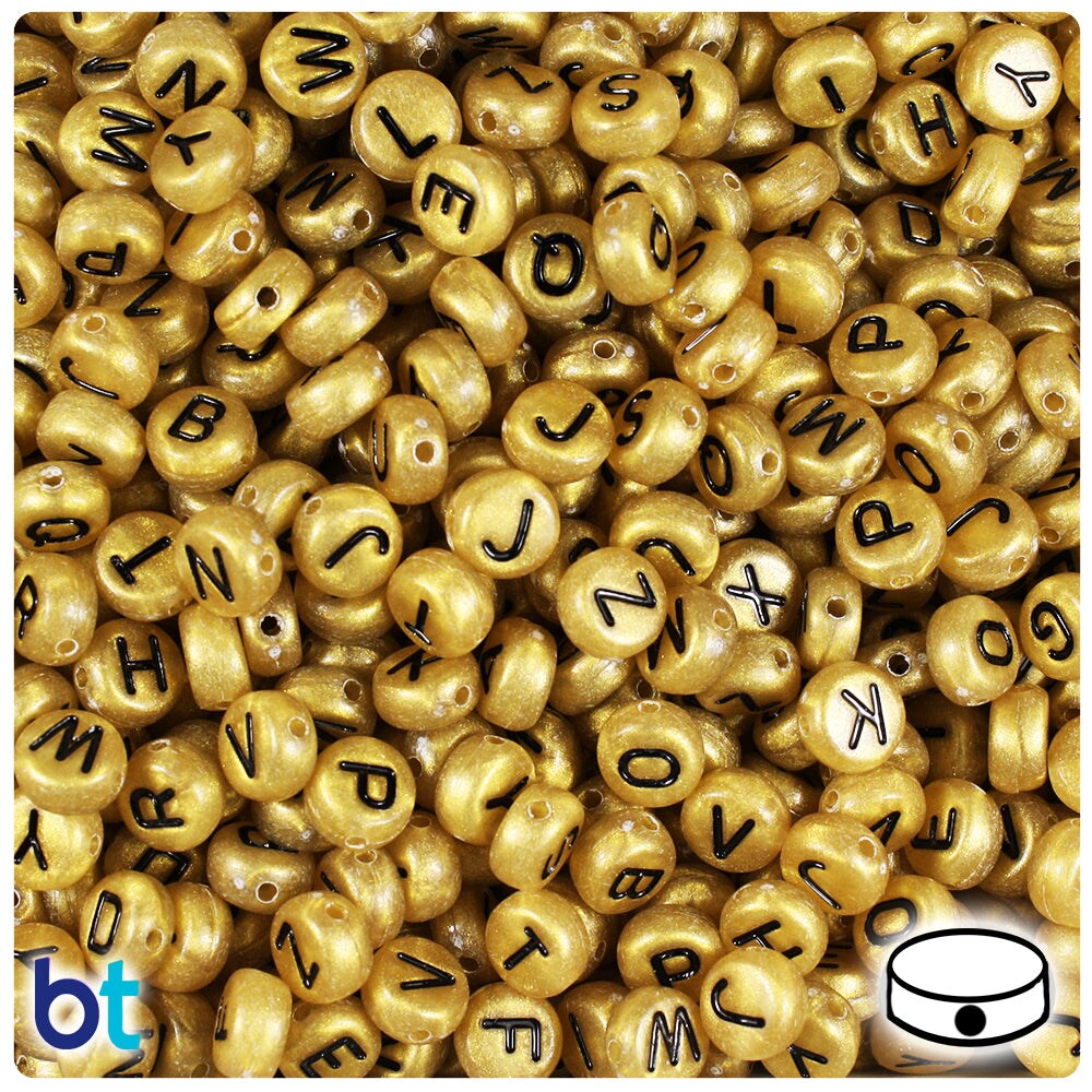 BeadTin Gold Pearl 7mm Coin Plastic Alpha Beads - Black Letter Mix (250pcs)
