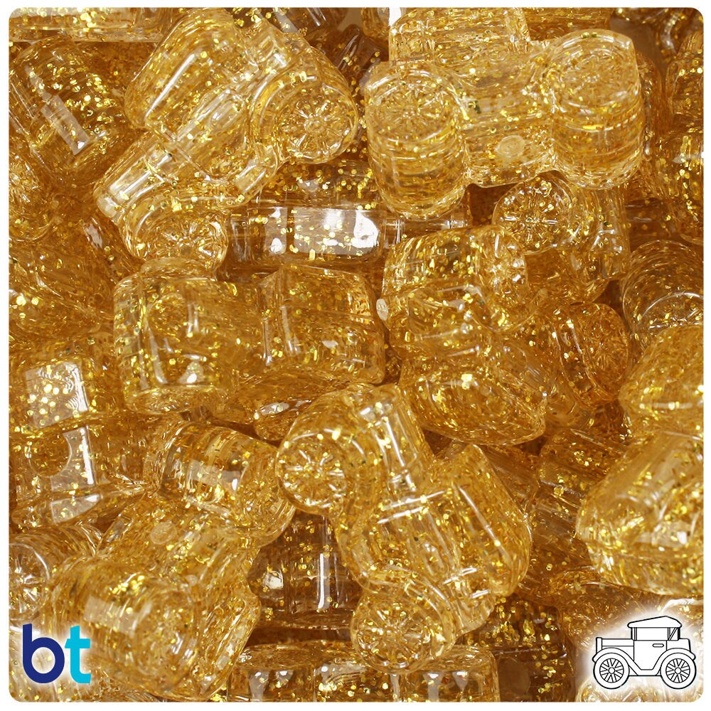 BeadTin Gold Sparkle 25mm Car Plastic Pony Beads (24pcs)