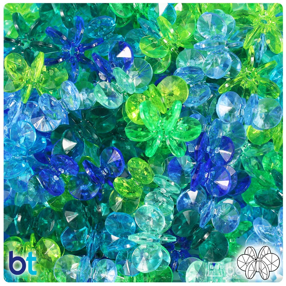 BeadTin Green & Blue Mix Transparent 18mm SunBurst Plastic Craft Beads (135pcs)