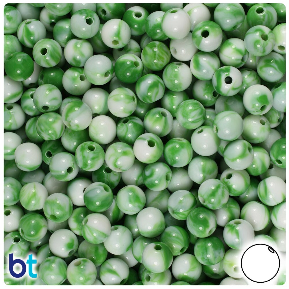 BeadTin Green Marbled 8mm Round Plastic Craft Beads (150pcs)
