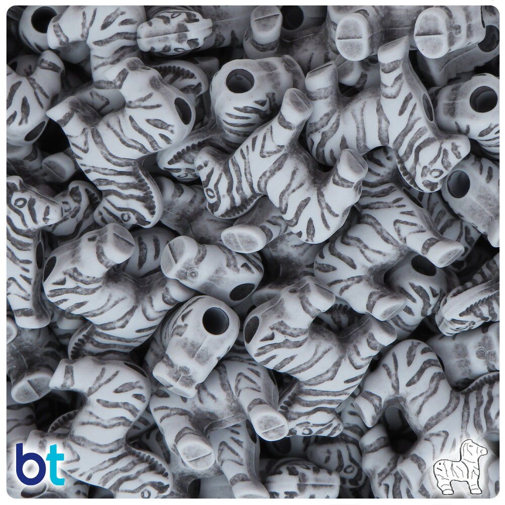 BeadTin Grey Antique 22mm Zebra Plastic Pony Beads (24pcs)