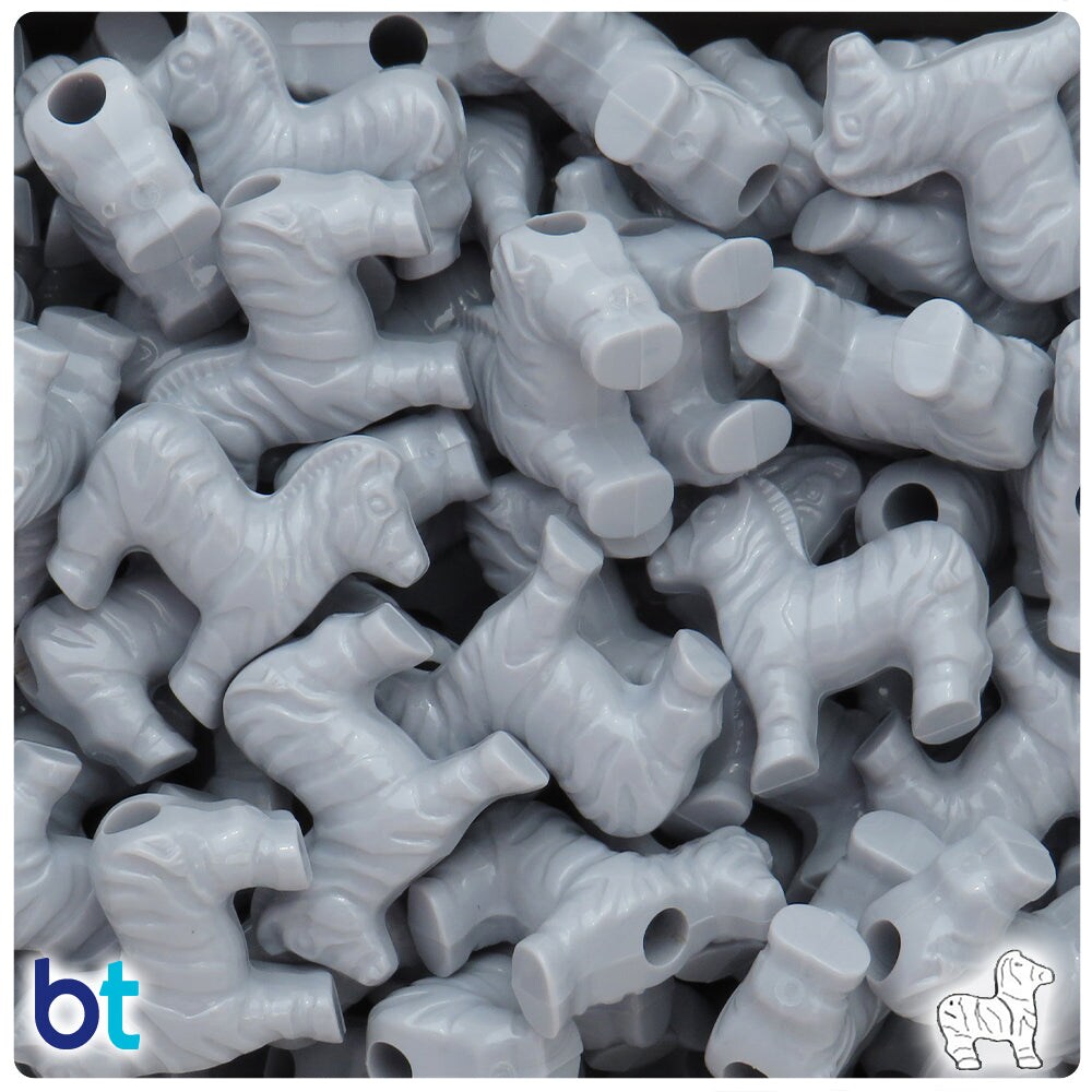 BeadTin Grey Opaque 22mm Zebra Plastic Pony Beads (24pcs)