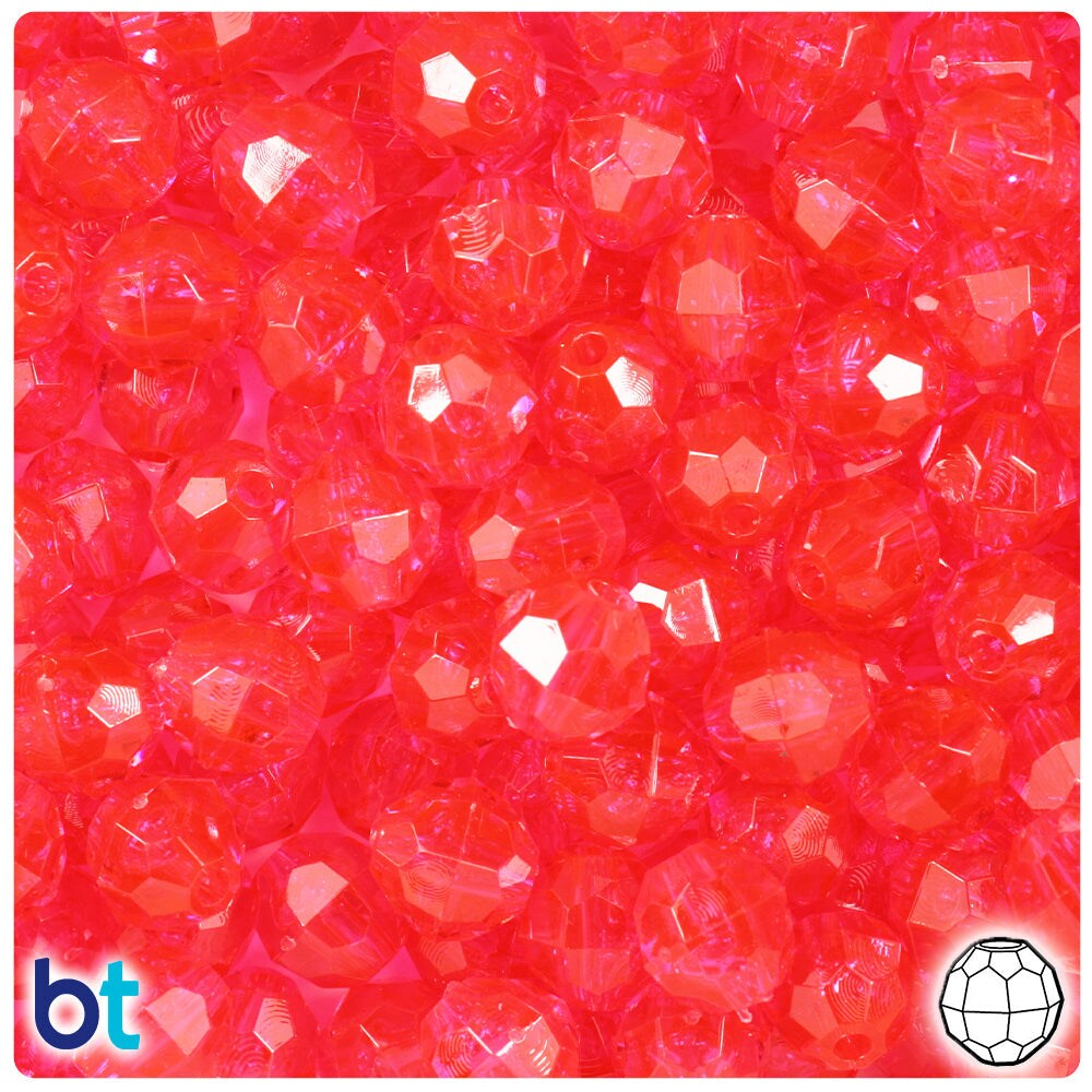 BeadTin Hot Pink Transparent 10mm Faceted Round Plastic Craft Beads (225pcs)