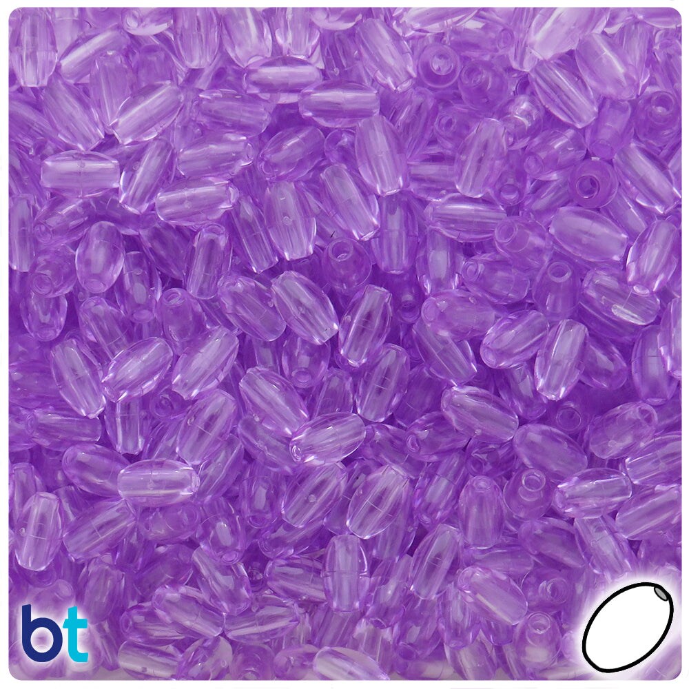 BeadTin Light Amethyst Transparent 9mm Oat Plastic Craft Beads (500pcs)
