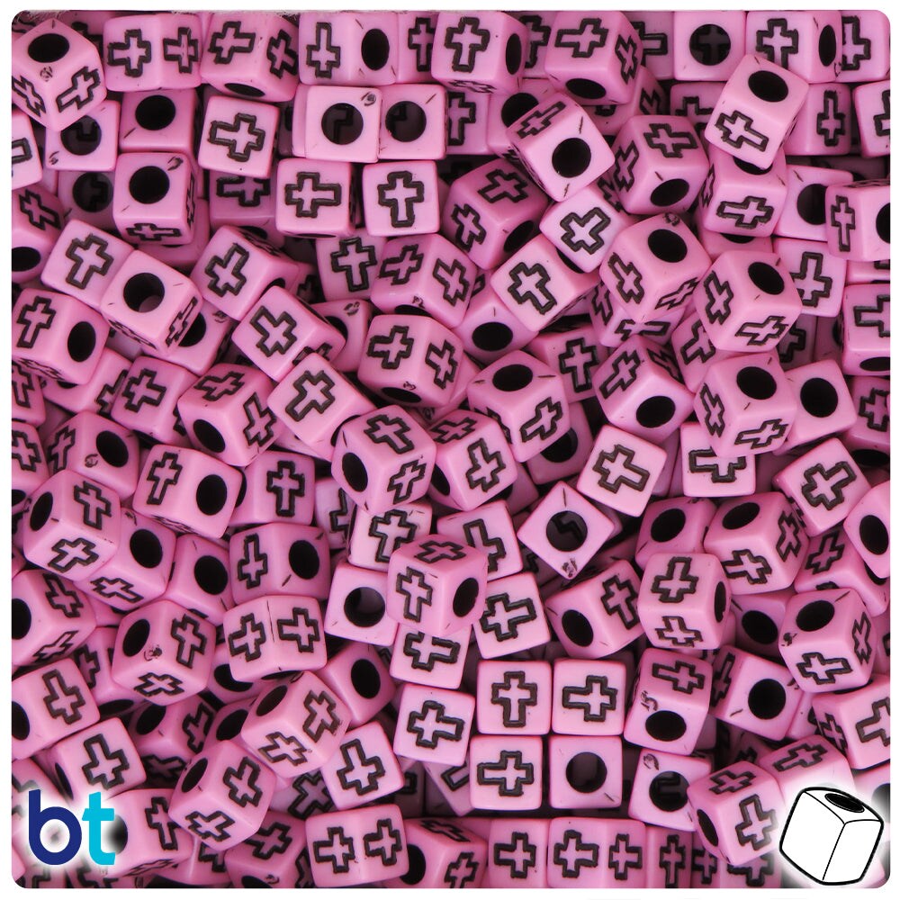 BeadTin Light Pink Opaque 6mm Cube Plastic Alpha Beads - Black Crosses (200pcs)