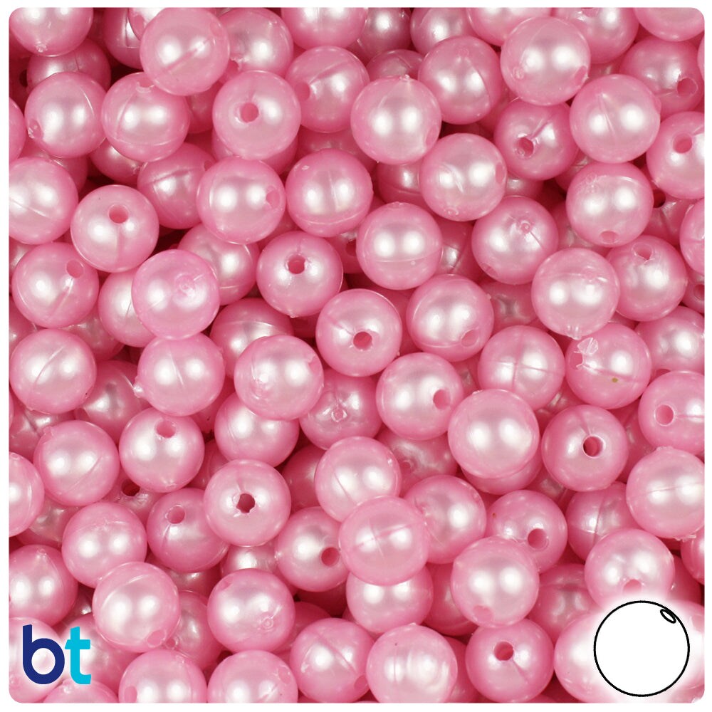 BeadTin Light Pink Pearl 8mm Round Plastic Craft Beads (300pcs)