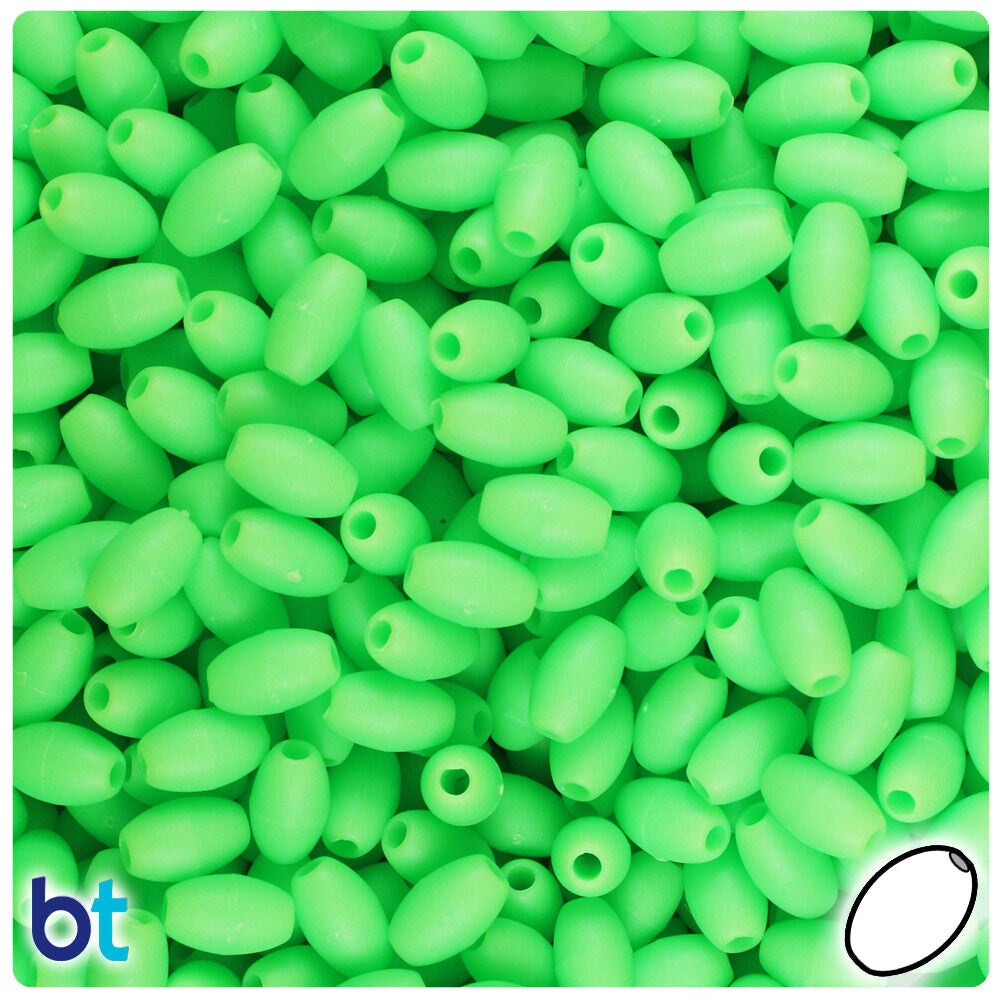 BeadTin Lime Matte 9mm Oat Plastic Craft Beads (500pcs)
