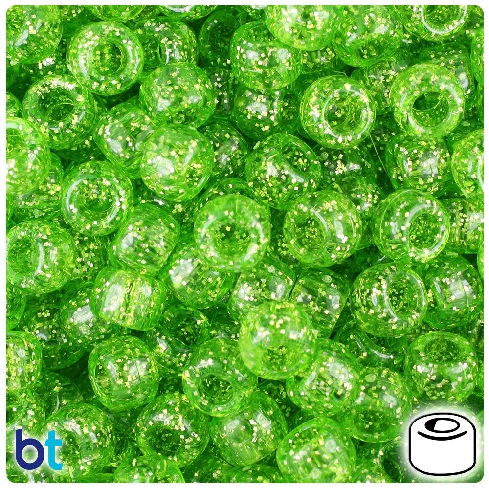 BeadTin Lime Sparkle 9mm Barrel Plastic Pony Beads (500pcs)