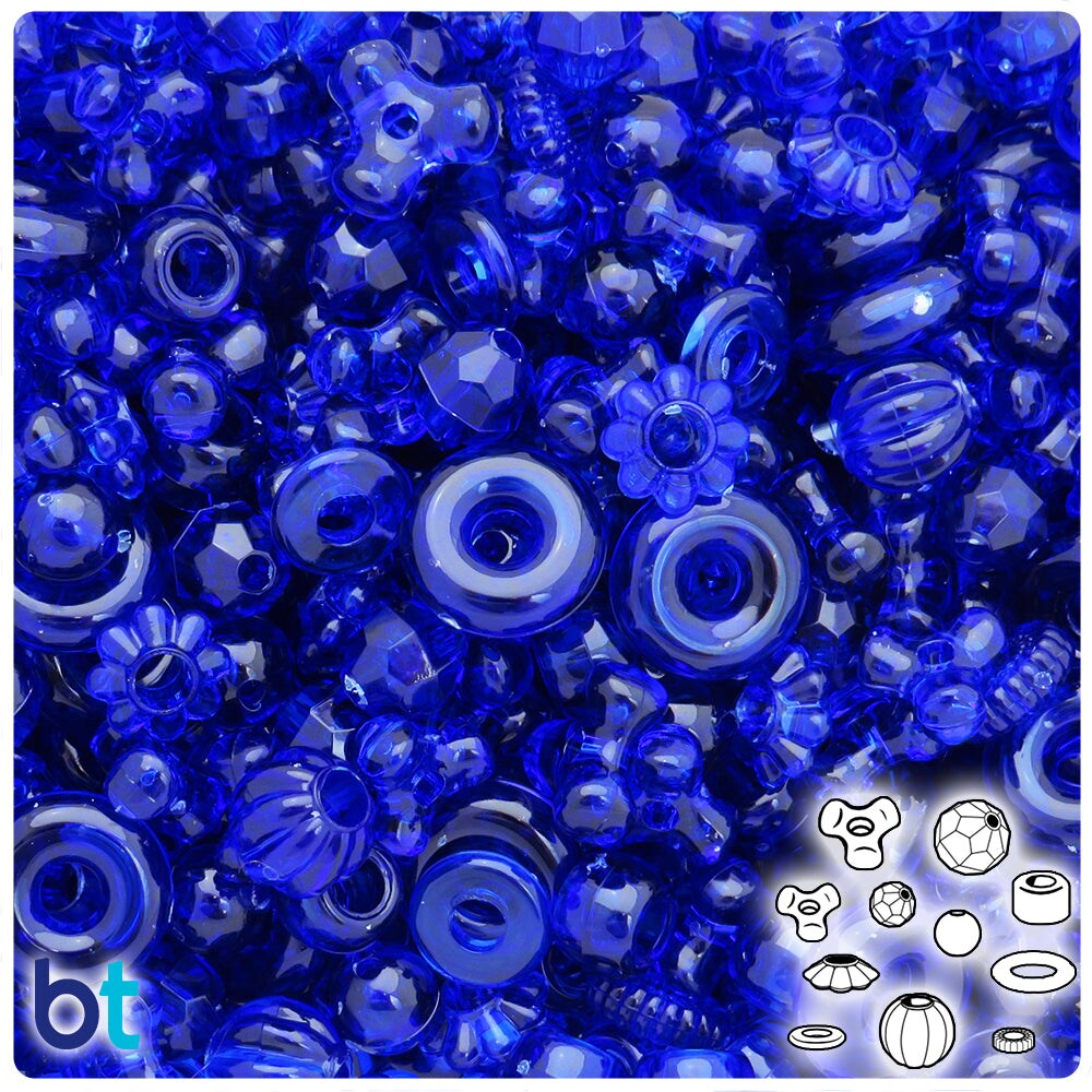 BeadTin Midnight Transparent Plastic Craft Beads Mix (4oz)