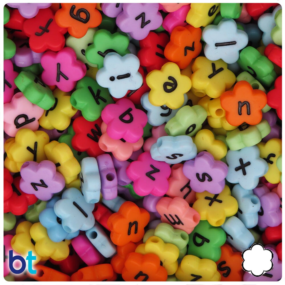 BeadTin Mixed Opaque 10mm Flower Plastic Alpha Beads - Black Letter Mix (150pcs)