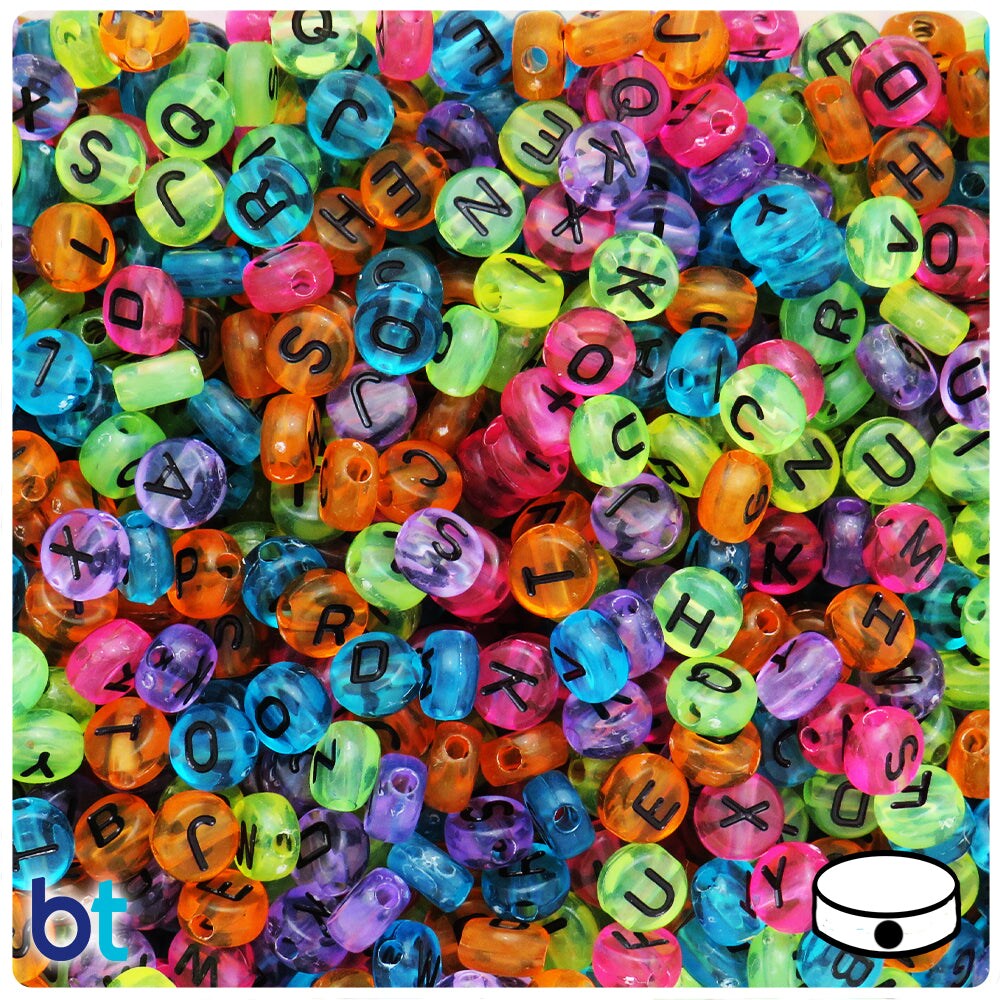 BeadTin Mixed Transparent 7mm Coin Plastic Alpha Beads - Black Letter Mix (250pcs)