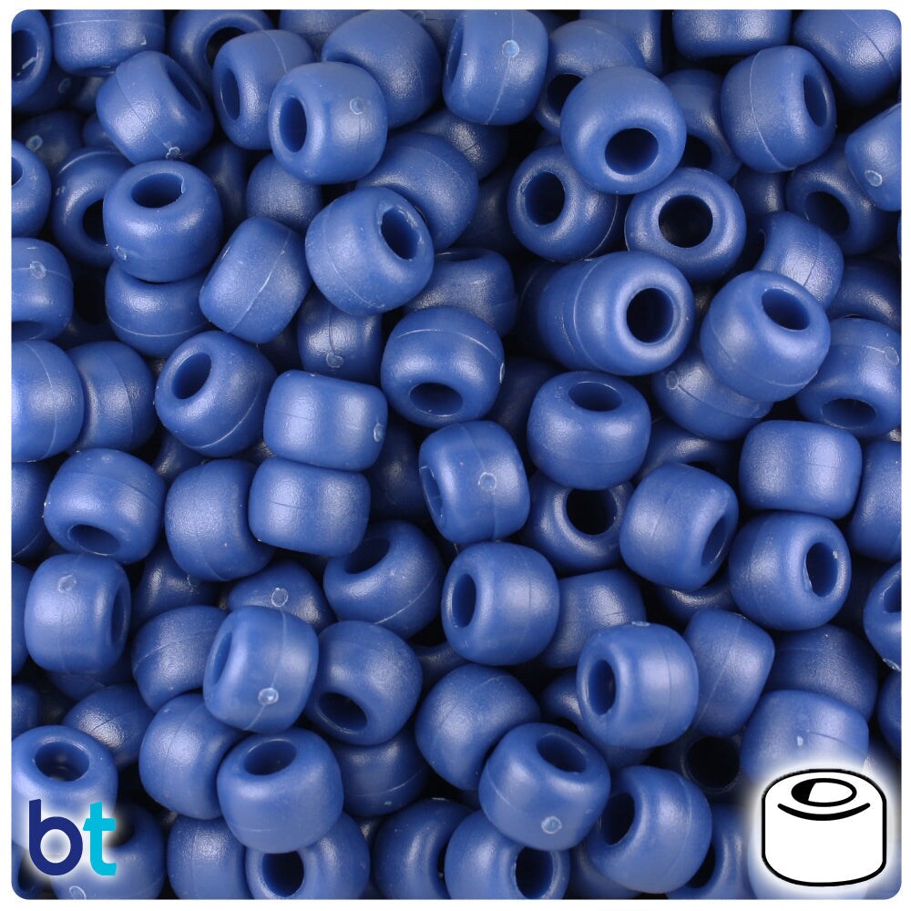 BeadTin Navy Matte 9mm Barrel Plastic Pony Beads (500pcs)
