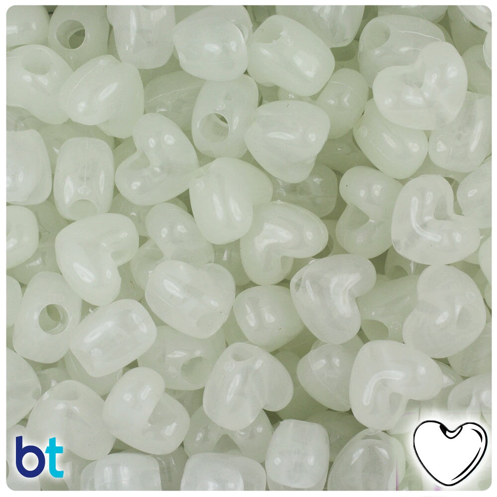 BeadTin Night Glow-in-the-Dark 12mm Heart (VH) Plastic Pony Beads (250pcs)