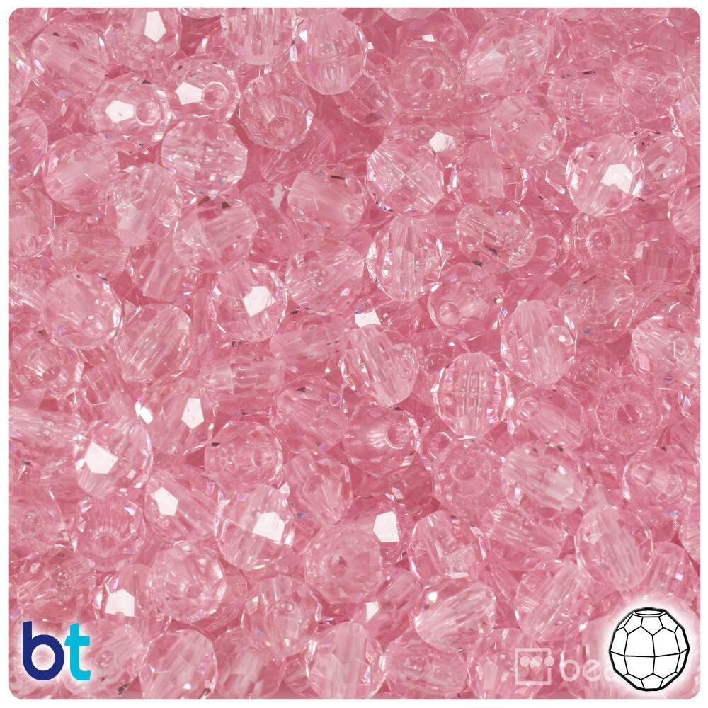 BeadTin Pale Pink Transparent 8mm Faceted Round Plastic Craft Beads (450pcs)